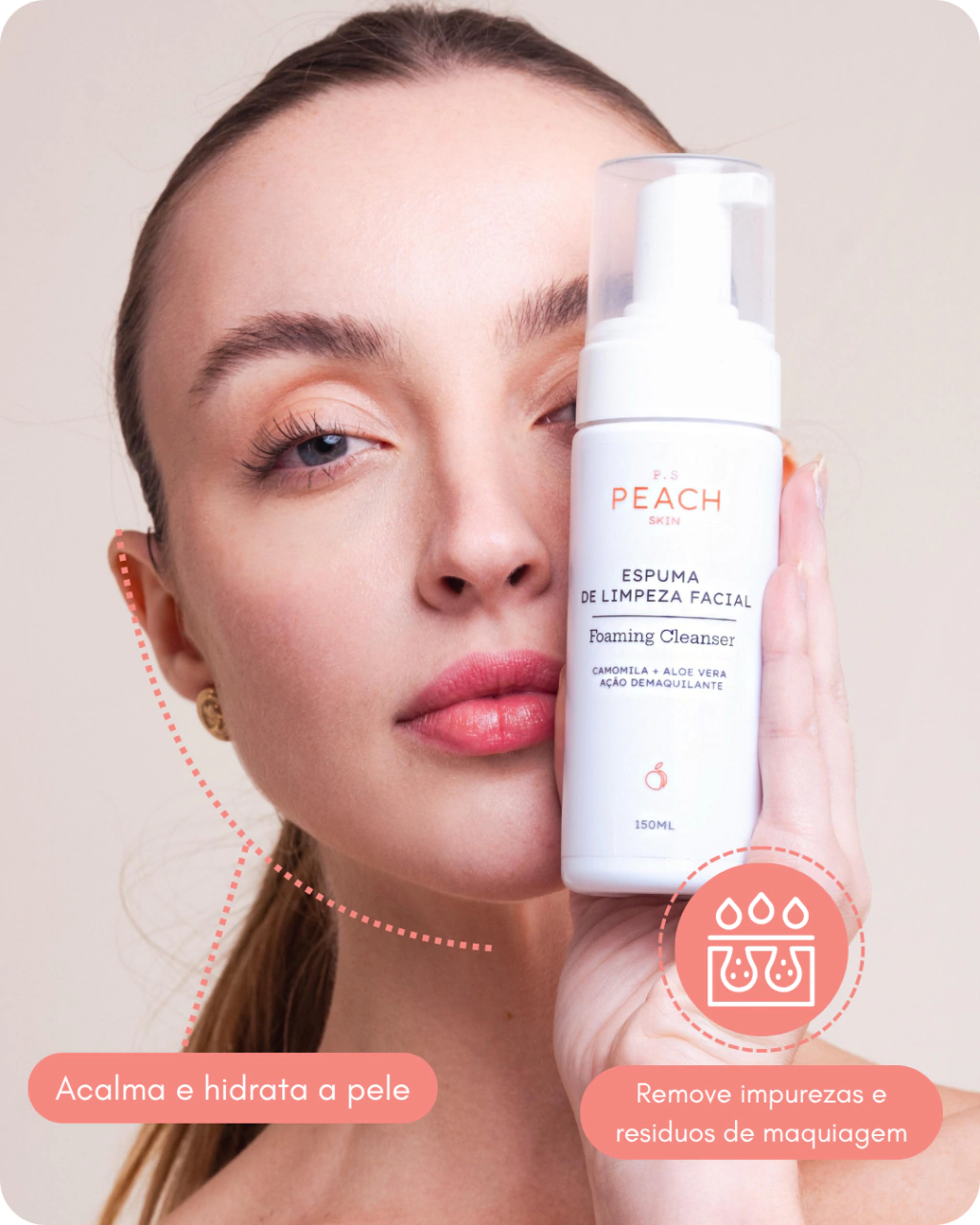A Espuma de Limpeza PS Peach Skin é a solução ideal para uma limpeza profunda e suave, proporcionando frescor e equilíbrio para a pele. Formulada com extrato glicólico de camomila e extrato glicólico de aloe vera, essa espuma de limpeza oferece uma ação delicada, removendo impurezas e resíduos de maquiagem enquanto acalma e hidrata a pele.